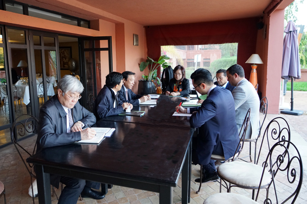 ??? 11月7日下午,經(jīng)過20多小時長途飛行抵達(dá)馬拉喀什,紀(jì)勤應(yīng)總經(jīng)理一行受到摩中商會會長金曼德先生、摩洛哥外貿(mào)銀行國際部主管Abdou先生的熱烈歡迎,雙方在下榻的酒店進(jìn)行了會晤。